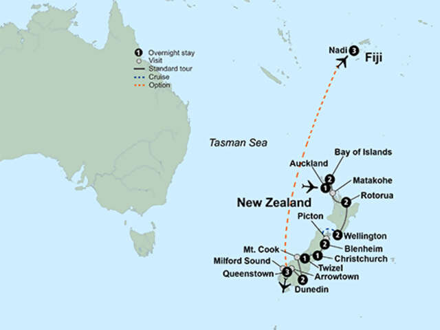 Journey to the subtropical Bay of Islands and the steaming geothermal vents of Rotorua. Venture to Mt. Cook in the Southern Alps and scenic Queenstown on the shores of Lake Wakatipu. Enjoy city tours of Auckland, Christchurch, Wellington and Dunedin. Spend two nights discovering the sun-soaked Bay of Islands. Explore the wineries of Marlborough. Stand in awe of the giant Kauri tree. Savor a leisurely 3-night stay in Queenstown, one of New Zealand’s prettiest towns. Cruise Milford Sound in dramatic Fiordland. Explore the beautiful 19th-century gold rush settlement of Arrowtown. Stay in Dunedin, a little slice of Scotland in the South Pacific. Overnight at the foot of massive Mt. Cook. Dine in a restored Christchurch mansion. Immerse yourself in the Maori culture. Discover the many treasures of New Zealand.