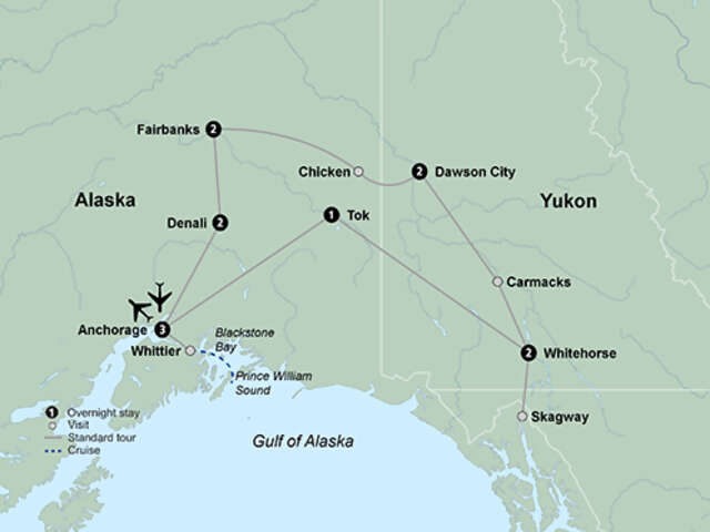 Surround yourself in unspoiled landscapes, ancient glaciers and an array of wildlife on your Alaskan and Yukon adventure. Take a trip through breathtaking Prince of William Sound to view its glaciers. Visit the small town of Tok, the original trade center for travelers coming from and returning to Canada. Experience the “Crowne Jewel” of the Canadian Parks system, Kluane National Park. Set out for the “Gateway of the Klondike” – Skagway. Board a scenic sternwheeler for a cruise on the peaceful Chena River. In the heart of wilderness, be introduced to a family who has made the rivers of Alaska a way of life. Savor first-class Goldstar service on the Alaska Railroad on an adventure into Denali National Park and travel deep into the park on a backcountry adventure Tundra Wilderness tour. Along the way come to know all of the treasures of “the last frontier.”