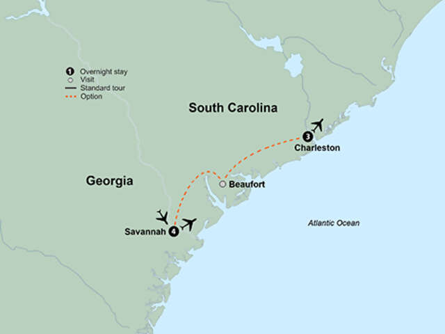 Get a taste of that sweet southern life in Savannah, Georgia, where moss-draped oaks line charming cobblestone streets. Enjoy a trolley around Savannah’s historic district, rolling by stately mansions, beautiful squares and romantic promenades. Take a tour of the sweet shops in City Market, sampling cookies, pralines, and ice cream along the way. Discover the history and spirit of the First African Baptist Church or learn the seafaring history of Savannah at the Ships of the Sea Maritime Museum. Learn about the Gullah-Geechee culture at the Pin Point Heritage Museum. Relax on Tybee Island before leaving by boat to search for playful pods of dolphins along the coast. This is southern comfort defined, so sit back, relax, and enjoy every minute of it.