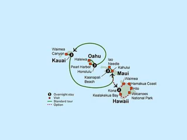 Let the spirit of “Aloha” be your guide on this leisurely three-island tour of Hawaii featuring three-night stays each in Oahu, Kauai and Maui. Enjoy your luxurious beach-front hotel in Waikiki. “Remember Pearl Harbor” and visit the USS Arizona Memorial. Embark on a wonderful journey along Oahu’s famous North Shore. Visit a historic plantation and the largest Hawaiian coffee estate in Kauai. See Waimea Canyon, the “Grand Canyon of the Pacific.” Experience a traditional Polynesian luau.
