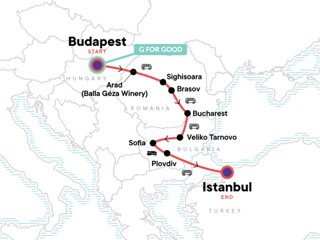 Your Welcome Moment: Welcome Moment - Meet Your CEO and Group. Budapest orientation walk. Visit to the Balla Géza Winery. Half-day tour of Sighisoara and surrounding countryside villages. 'Dracula's Castle' (Bran). Bucharest orientation tour. Hike to Arbanasi village. Sofia orientation walk. Istanbul city tour with local guide. All transport between destinations and to/from included activities.
