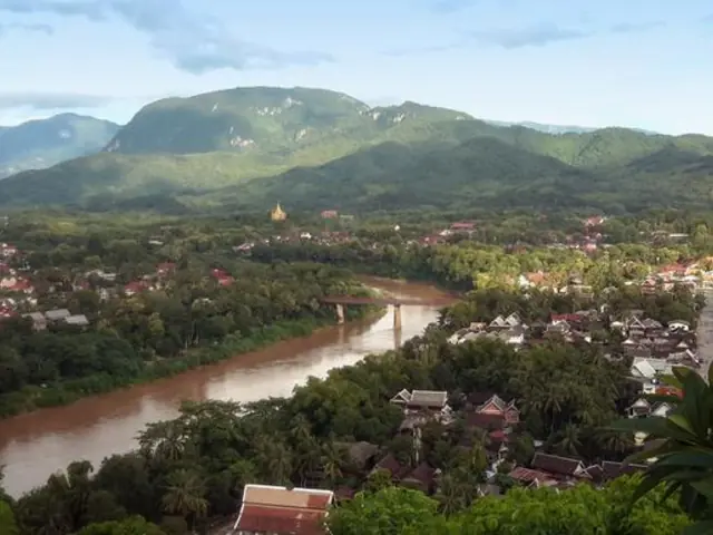 Continue to colourful Luang Prabang and make your first acquaintance with this ancient city during an afternoon orientation walk. Afterward, embark on a short trek up sacred Mount Phousi, climbing the stone stairs with scaly golden handrails, past the monks quarters and Buddha's footprint cave, to reach the temple at the top - Wat Phousi. Enjoy a 360-degree view of the sun setting upon Luang Prabang and the Mekong River before an evening street food crawl.